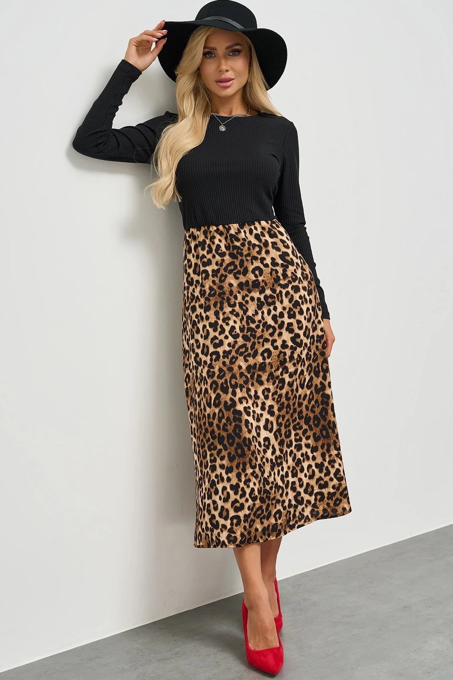 Платье длинное комбинированное от производителя Jetty. Верх выполнен из трикотажа-лапша, юбка из плотной плательной ткани "Прадо". Длинный втачной рукав. Стильный вариант на каждый день.