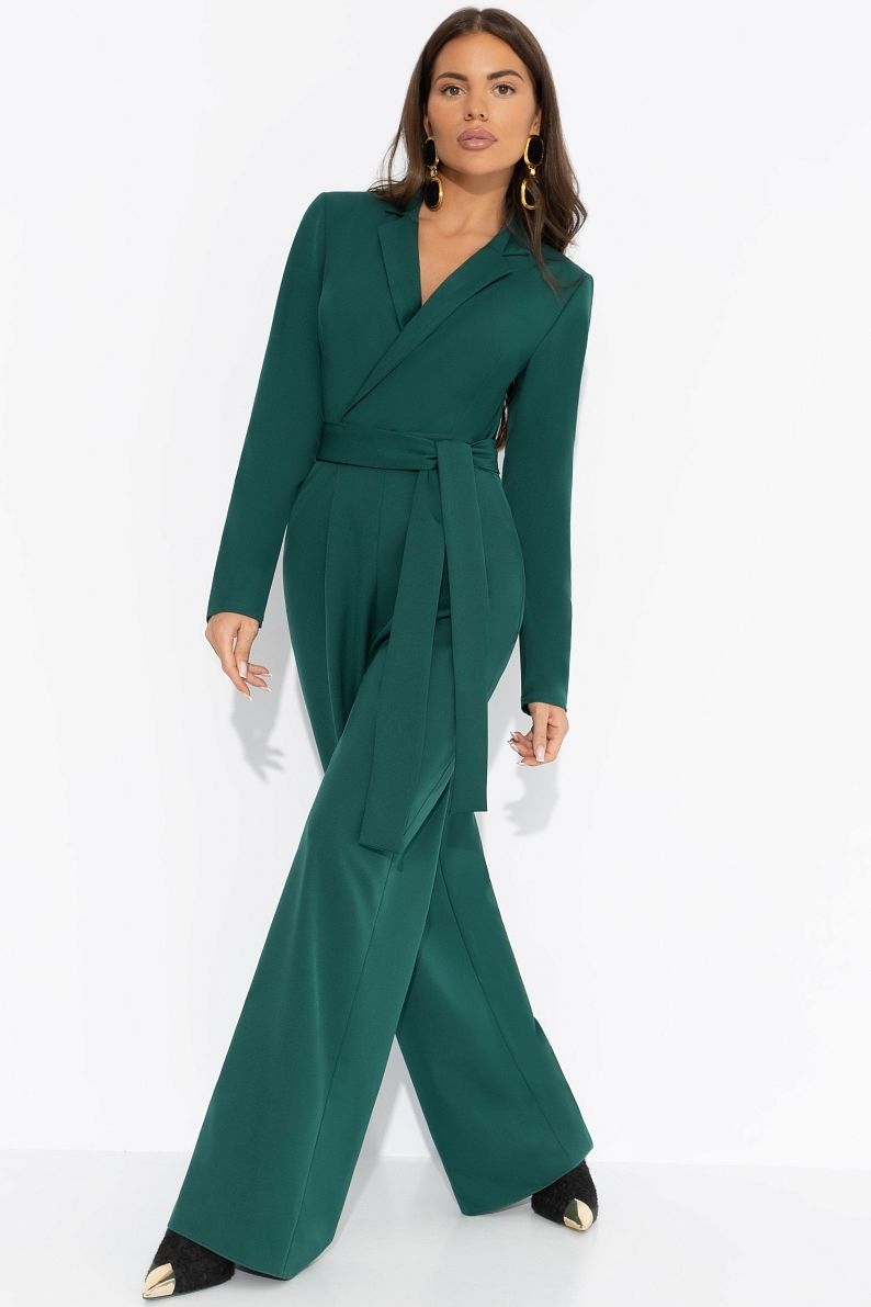 Комбинезон зелёный с карманами от компании Charutti. Модель полуприлегающего силуэта, выполнена из костюмного полотна "туран". V-образный вырез горловины с небольшой стойкой. Втачные длинные рукава. Талия отрезная. Это Ваш отличный образ, в котором вы всегда чувствуете себя уверенно.