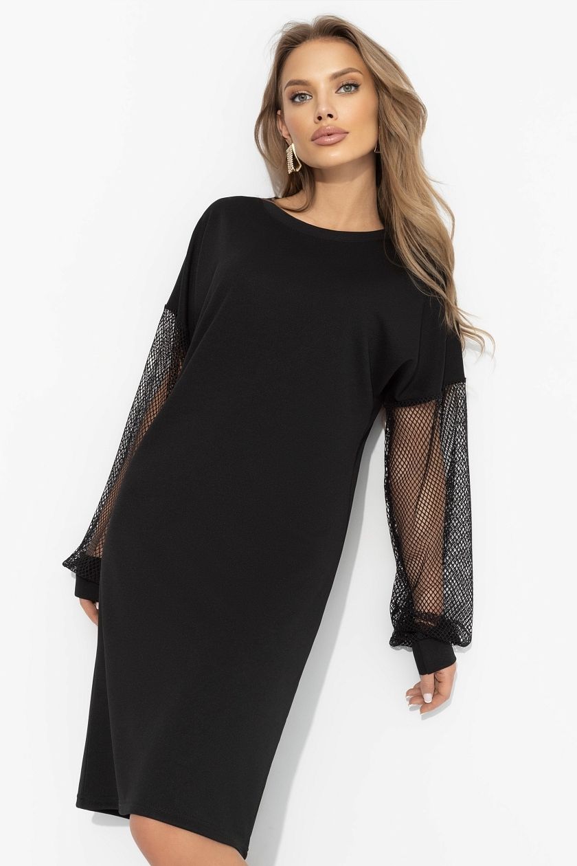 Платье чёрное с с акцентными рукавами