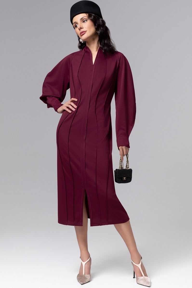 Платье-футляр бордовое со швами наружу от компании Charutti. Модель прилегающего силуэта. Круглый вырез горловины переходит в V-образный разрез. Длинные рукава-реглан. Без застёжки. Это Ваш отличный образ, в котором вы всегда чувствуете себя уверенно.