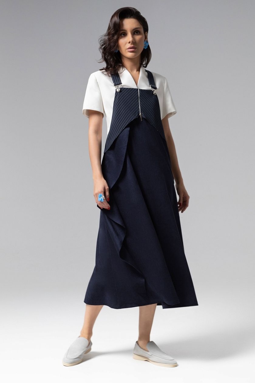 Сарафан из мягкой замши в синем цвете