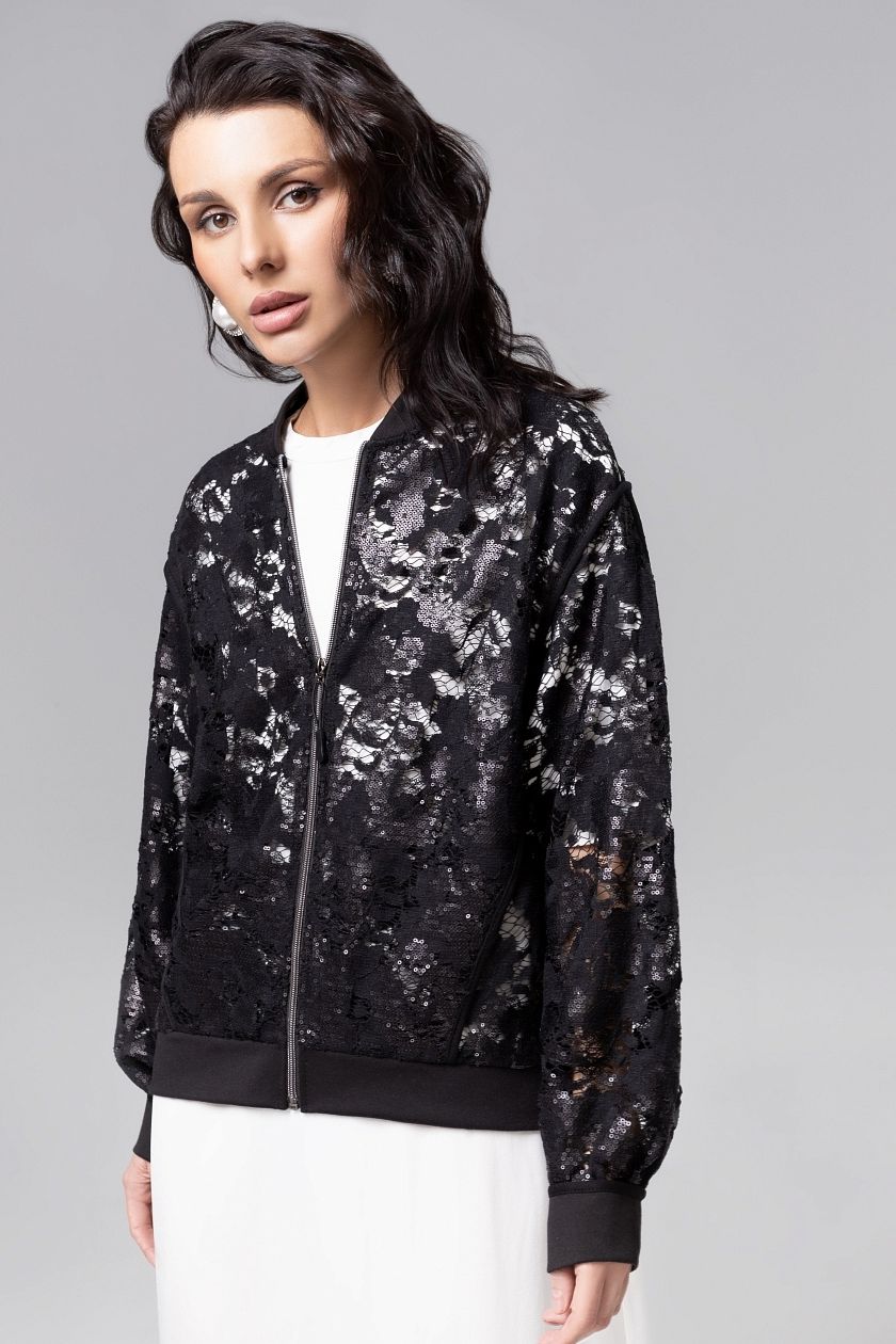 Жакет из костюмного плотного вельвета с цветочным принтом в чёрном цвете Идеальный баланс, шик